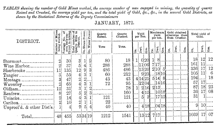 | Dept. Mines 1872 | Mining Statistics | Gold Jan. | Labour & Resources | Gold Feb. | |