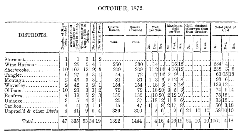 | Dept. Mines 1872 | Mining Statistics | Gold Oct. | Gold Sep. | Gold Nov. | |