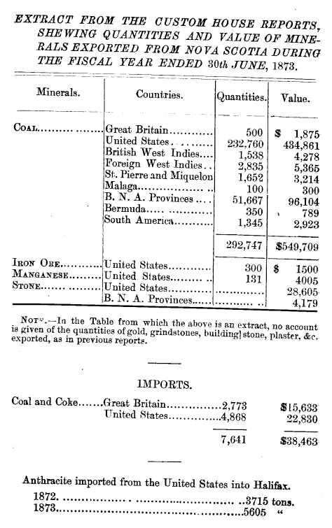 | Dept. Mines 1873 | Mining Statistics | Minerals Exported | Historic Production | US Imports & Exports | |