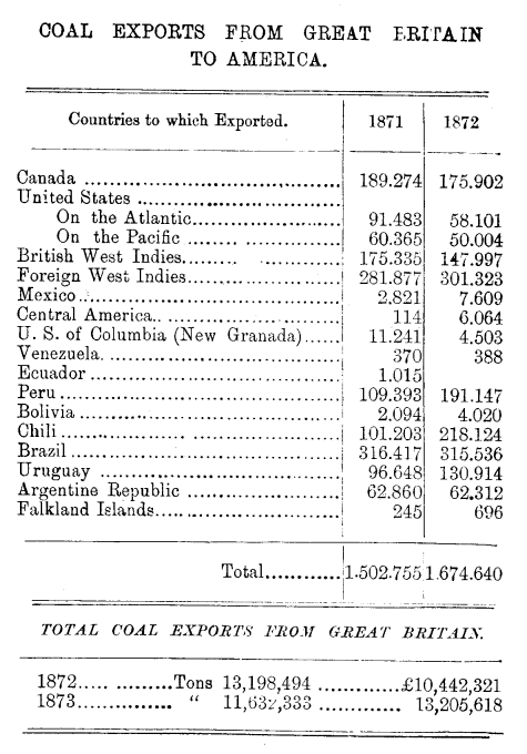 | Dept. Mines 1873 | Mining Statistics | Exports from Great Britain | US Imports & Exports | Persons Employed | |