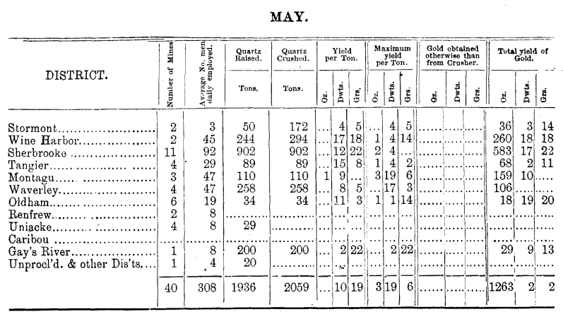 | Dept. Mines 1873 | Mining Statistics | Gold May | Gold Apr. | Gold Jun. | |